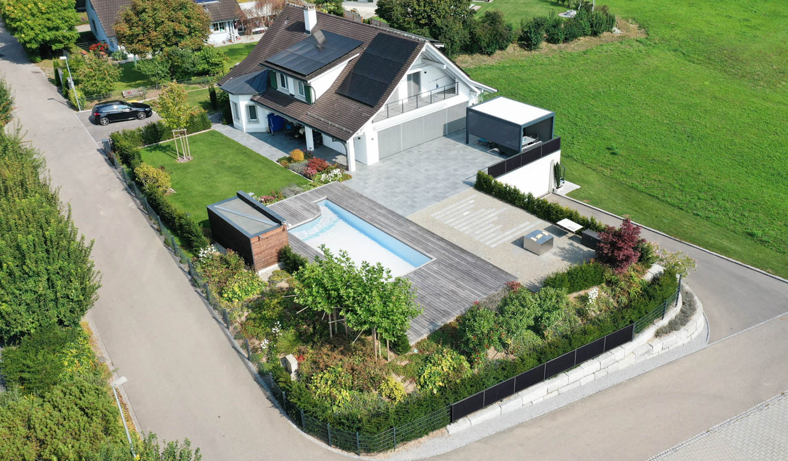 Solarstrom trifft auf eine elegante Landresidenz, eine Begegnung, die Präzision und Fingerspitzengefühl verlangt. Nicht nur bei der optimalen Ausrichtung der Module, sondern vor allem im sensiblen Dialog mit der Ästhetik des Hauses. Als stilvolle Erweiterung der bestehenden Dachanlage fügen sich die Zaunmodule funktional ins Gesamtbild ein.